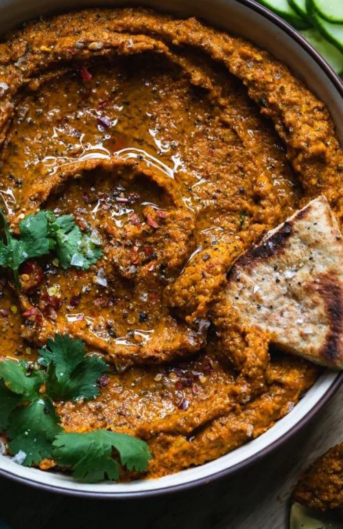 Быстрая и ароматная закуска или густой соус/дип из печеных перцев с фетой и травами, чтобы макать в него мягкие лепешки или хрустящие крекеры — идеальный формат для небольшой вечеринки, перекуса за просмотром сериала или на дачный стол для компании.