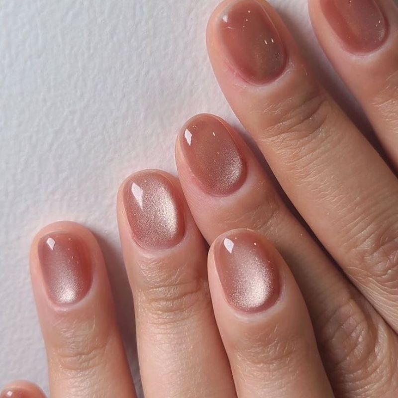 Корейский желейный маникюр получают путем нанесения на ногти нескольких слоев полупрозрачного и с легким оттенком геля, который создает одновременно, и прозрачность, и глубину.