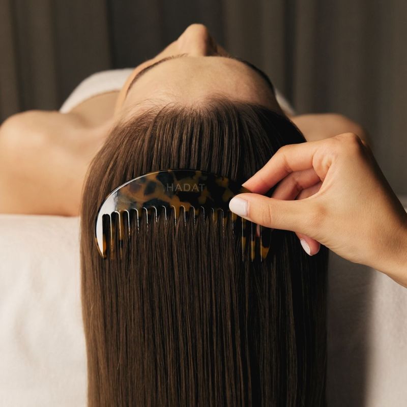 Для массажа кожи головы подойдет тяжеленькая расческа-гуаша из нефрита или розового кварца, массажная щетка или расческа с опцией массажа/вибрацией/терапией светом, гребень из натурального дерева (чаще всего, их делают из сандала).